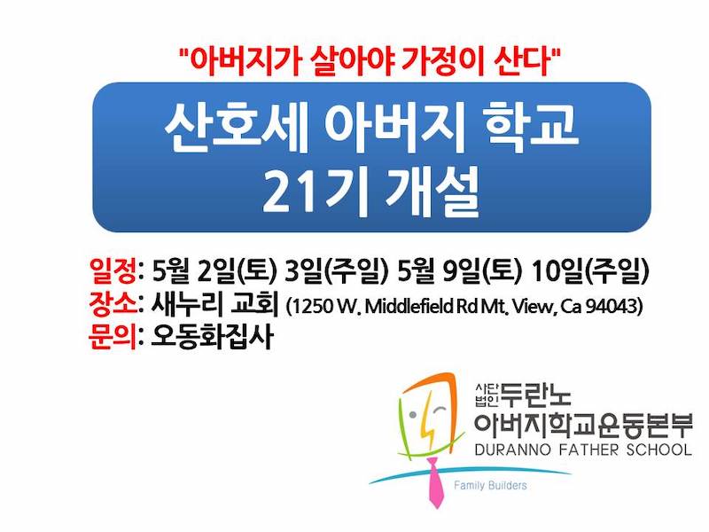 산호세 아버지 학교 21기 개설 Publish on April 23,2015 | 관리자