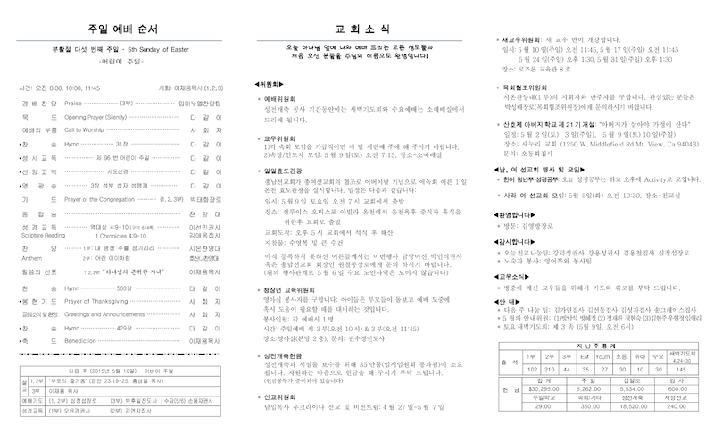 2015년 5월 3일 - 어린이주일 Publish on May 03,2015 | 교회사무실 페이지 정보 작성자 교회사무실 댓글 0건 조회 5,991회 작성일 15-05-03 12:00 목록 본문 이전글2015년 5월 10일 어버이주일 15.05.10 다음글새교우 반 개강 15.04.28 댓글 0 댓글목록 등록된 댓글이 없습니다. 목록