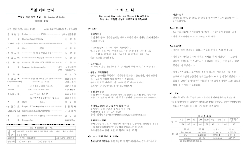 2015년 5월 10일 어버이주일 Publish on May 10,2015 | 교회사무실 페이지 정보 작성자 교회사무실 댓글 0건 조회 6,032회 작성일 15-05-10 10:34 목록 본문 이전글한국학교 가을학기 등록 안내 15.05.13 다음글2015년 5월 3일 - 어린이주일 15.05.03 댓글 0 댓글목록 등록된 댓글이 없습니다. 목록