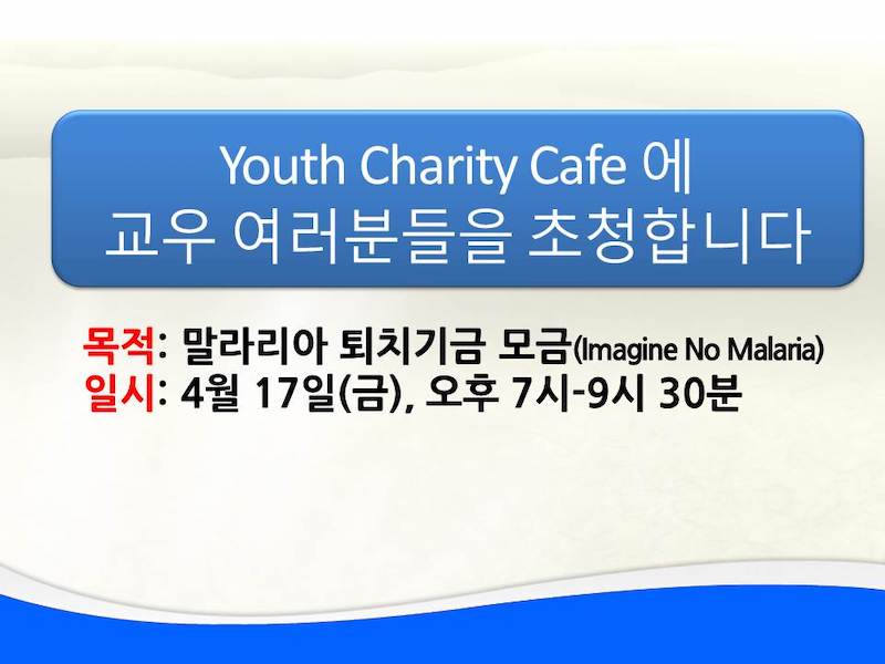 Youth Charity Cafe 에 교우 여러분들을 초청합니다