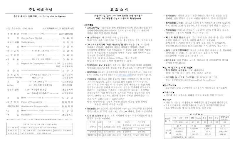 2015년 2월 8일 Publish on February 08,2015 | 교회사무실 페이지 정보 작성자 교회사무실 댓글 0건 조회 5,982회 작성일 15-02-08 13:10 목록 본문 이전글2015년 성경공부 안내 15.02.11 다음글2015년 2월 1일 15.02.06 댓글 0 댓글목록 등록된 댓글이 없습니다. 목록