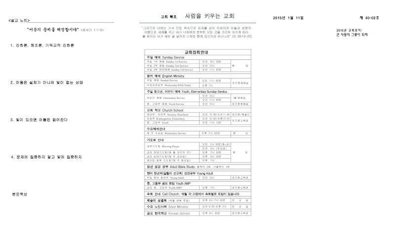 2015년 1월 11일 Publish on January 13,2015 | 교회사무실 페이지 정보 작성자 교회사무실 댓글 0건 조회 6,048회 작성일 15-01-13 17:16 목록 본문 이전글2015년 1월 18일 15.01.18 다음글전도훈련모임 15.01.12 댓글 0 댓글목록 등록된 댓글이 없습니다. 목록