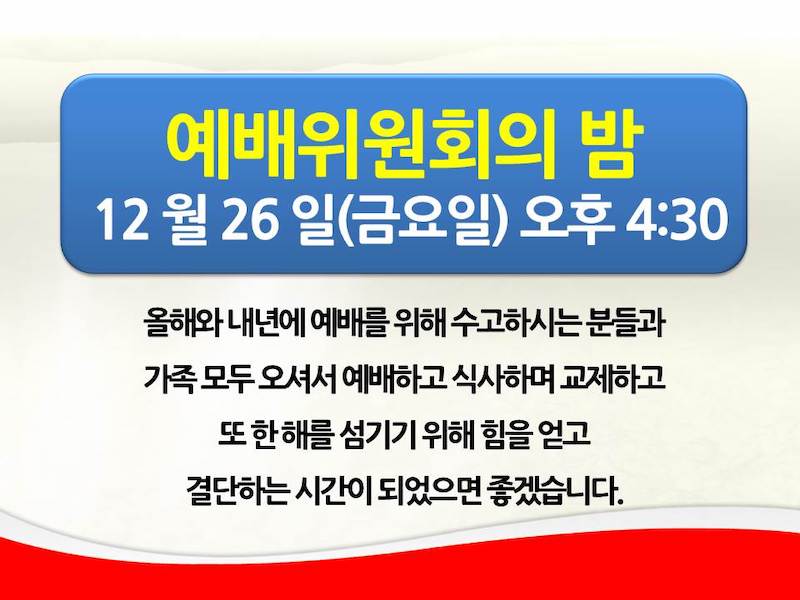 예배위원회의 밤 - 12 월 26 일(금요일) 오후 4:30