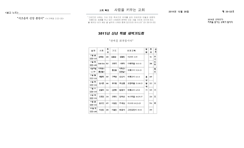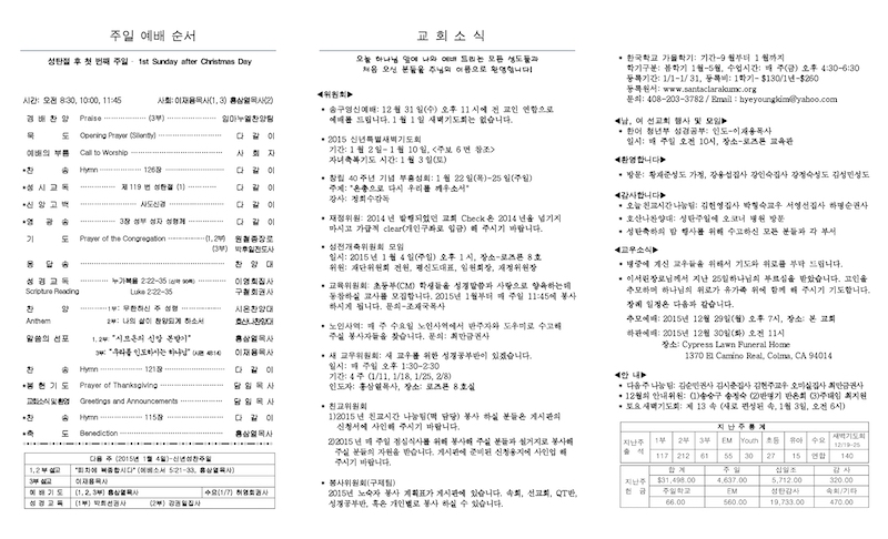 2014년 12월 28일 Publish on December 28,2014 | 교회사무실 페이지 정보 작성자 교회사무실 댓글 0건 조회 6,207회 작성일 14-12-28 16:17 목록 본문 이전글<웹팀공지>웹사이트 로그인 문제 안내 14.12.31 다음글2014년 12월 21일-성탄주일 14.12.21 댓글 0 댓글목록 등록된 댓글이 없습니다. 목록