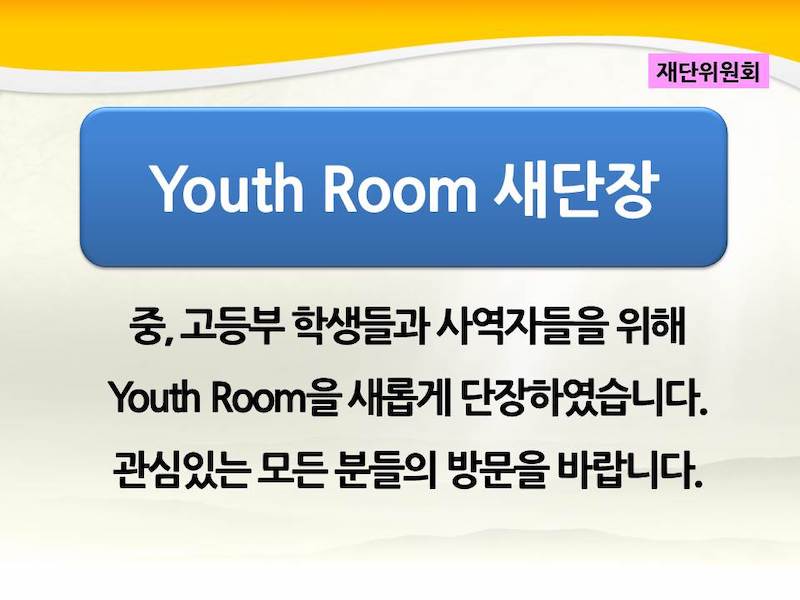 Youth Room 새단장 Publish on November 25,2014 | 관리자 페이지 정보 작성자 관리자 댓글 0건 조회 6,441회 작성일 14-11-25 00:20 목록 본문 Youth Room 새단장중, 고등부 학생들과 사역자들을 위해 Youth Room을 새롭게 단장하였습니다. 관심있는 모든 분들의 방문을 바랍니다. 이전글추수감사절 교회 사무실 휴무 14.11.25 다음글성경공부를 수료 14.11.25 댓글 0 댓글목록 등록된 댓글이 없습니다. 목록