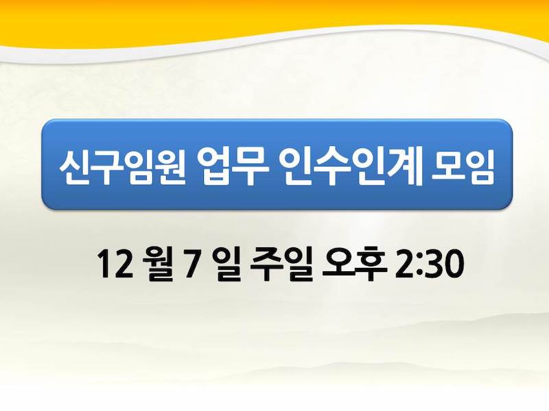 신구임원 업무 인수인계 모임 Publish on November 25,2014 | 관리자 페이지 정보 작성자 관리자 댓글 0건 조회 6,559회 작성일 14-11-25 00:21 목록 본문 신구임원 업무 인수인계 모임 이전글2014년 11월 30일 14.11.30 다음글추수감사절 교회 사무실 휴무 14.11.25 댓글 0 댓글목록 등록된 댓글이 없습니다. 목록