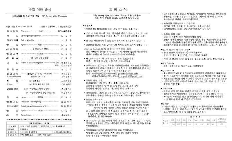 2014년 10월 26일 Publish on October 30,2014 | 교회사무실 페이지 정보 작성자 교회사무실 댓글 0건 조회 6,452회 작성일 14-10-30 17:43 목록 본문 이전글추수감사절 제단장식 14.11.06 다음글섬머타임해제 14.10.27 댓글 0 댓글목록 등록된 댓글이 없습니다. 목록