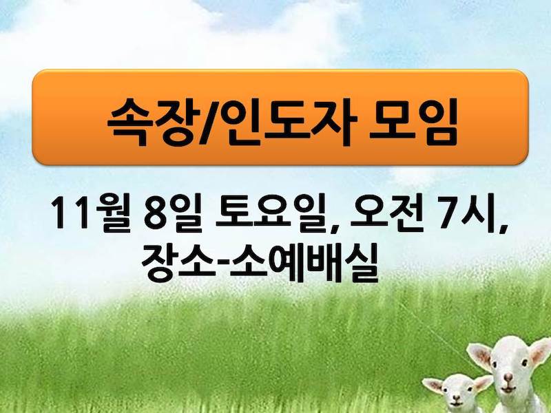 속장/인도자 모임 Publish on November 06,2014 | 관리자 페이지 정보 작성자 관리자 댓글 0건 조회 6,652회 작성일 14-11-06 01:34 목록 본문 속장/인도자 모임11월 8일 토요일, 오전 7시, 장소-소예배실 이전글가을 대청소 14.11.06 다음글추수감사절 제단장식 14.11.06 댓글 0 댓글목록 등록된 댓글이 없습니다. 목록