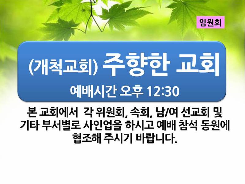 사인업을 하시고 예배 참석 동원에 협조해 주시기 바랍니다.