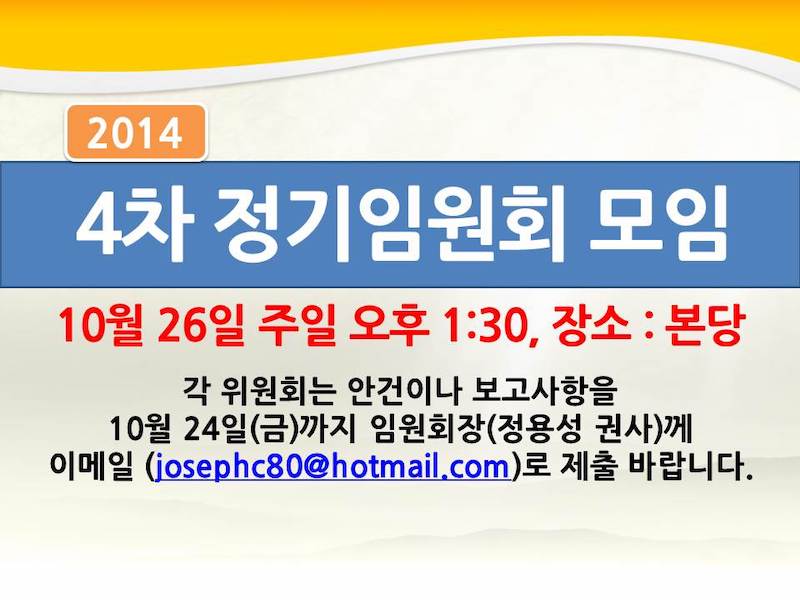4차 정기임원회 모임 Publish on October 12,2014 | 관리자