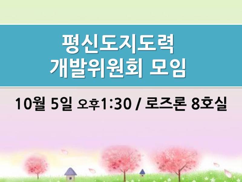 평신도지도력 개발위원회 모임 Publish on September 29,2014 | 관리자 페이지 정보 작성자 관리자 댓글 0건 조회 6,483회 작성일 14-09-29 17:16 목록 본문 평신도지도력개발위원회 모임10월 5일 오후1:30 / 로즈론 8호실 이전글성경공부 및 큐티모임안내 14.09.30 다음글등산 동호회 주최 가을등산 14.09.29 댓글 0 댓글목록 등록된 댓글이 없습니다. 목록