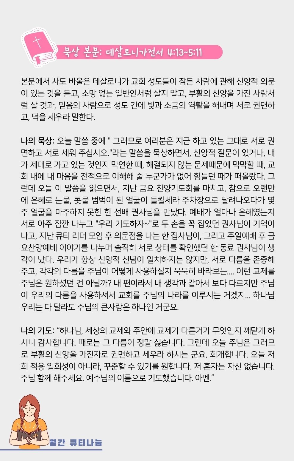 - 큐티중에 받은은혜를함께 나누어주시면월간큐티나눔집에실어드립니다.