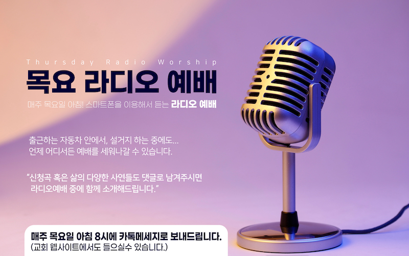 목요 라디오 예배 Publish on September 16,2020 | 관리자 페이지 정보 작성자 관리자 댓글 0건 조회 7,305회 작성일 20-09-16 22:10 목록 본문 라디오 예배는 9월 17일 목요일 부터 시작합니다. 이전글2022 나바호 원주민 단기선교 22.05.26 다음글재정감사 21.01.23 댓글 0 댓글목록 등록된 댓글이 없습니다. 목록