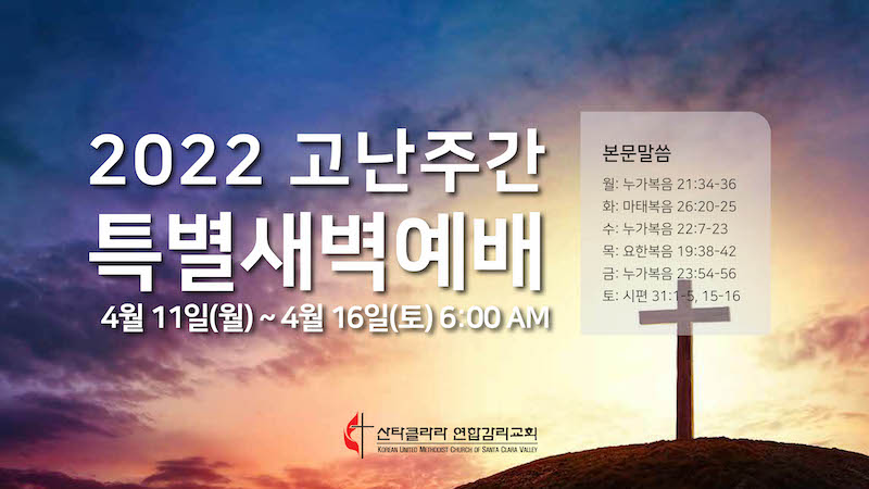 2022 고난주간 특별새벽예배 Publish on April 10,2022 | 관리자