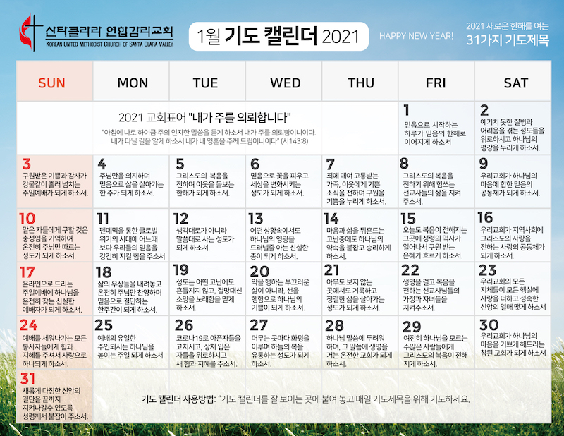 2021 기도 캘린더 (1월) Publish on December 26,2020 | 관리자