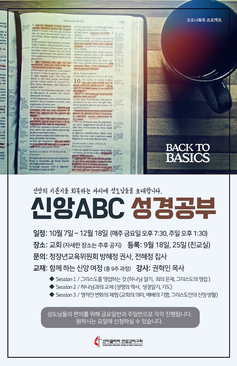 신앙의 기본기를 회복하는 '신앙ABC 성경공부'를 새롭게 시작합니다.