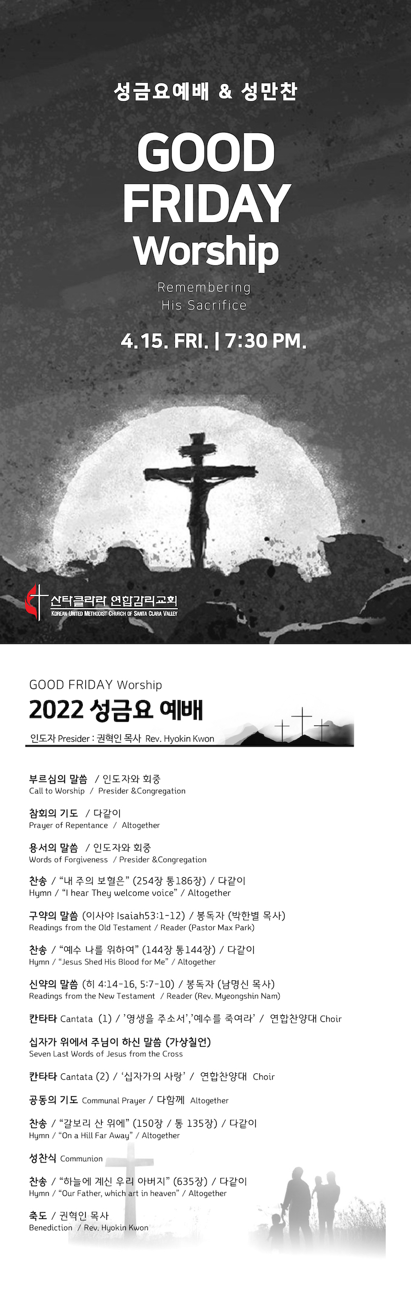 2022 성 금요일 예배 Publish on April 15,2022 | 관리자