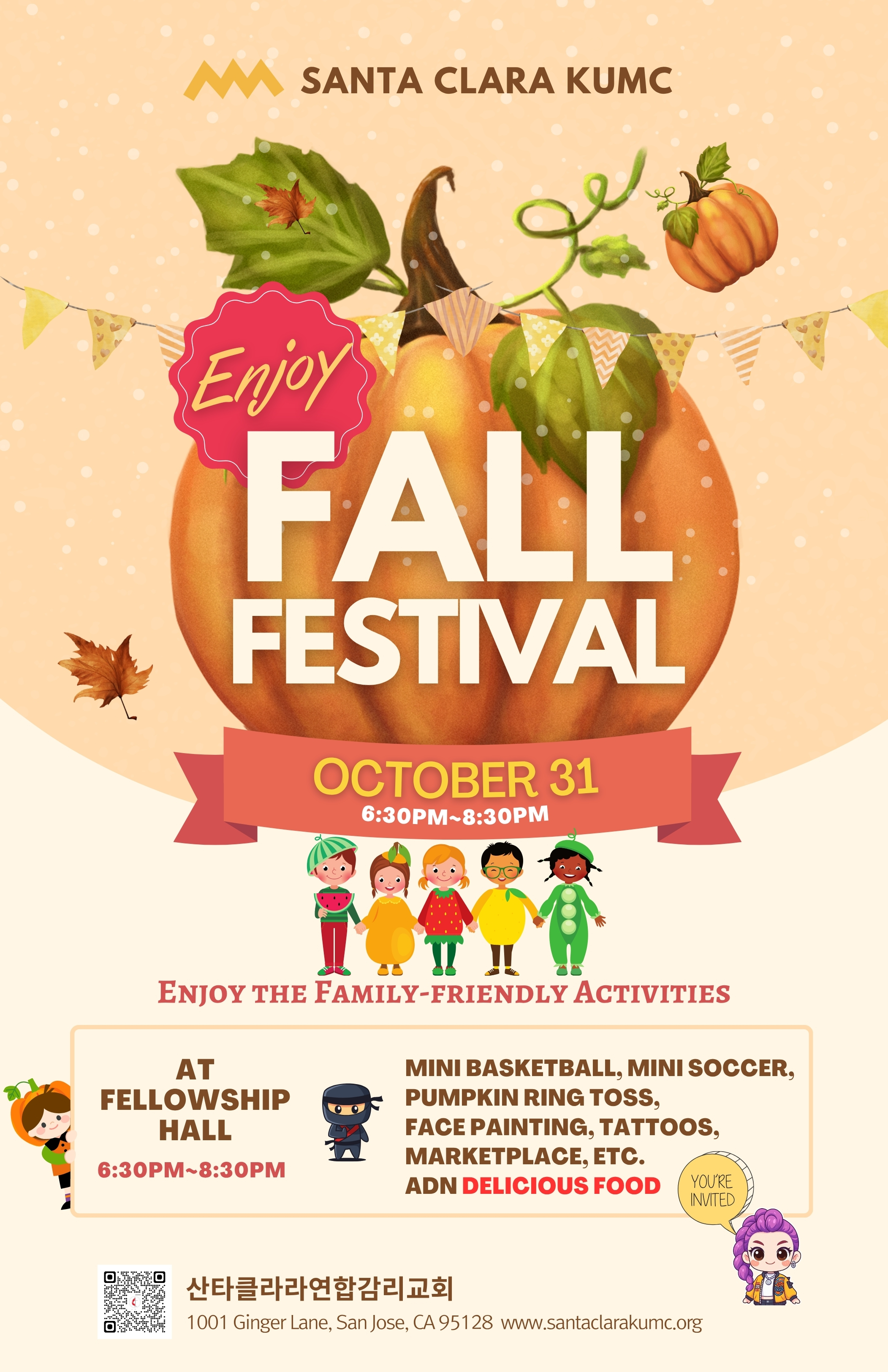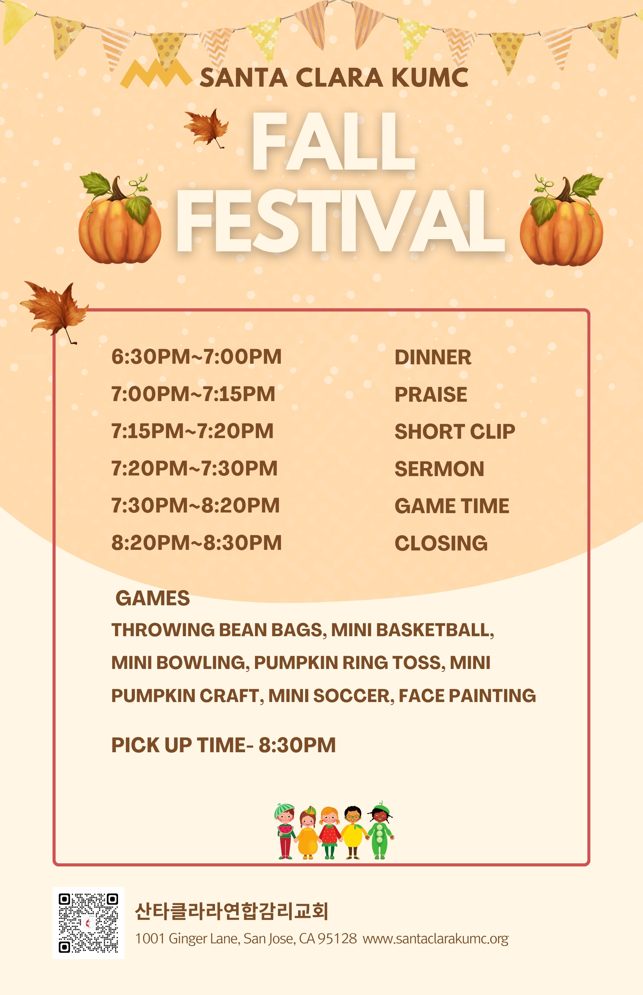 가을축제 Publish on October 24,2025 | 관리자 페이지 정보 작성자 관리자 댓글 0건 조회 581회 작성일 25-10-24 07:43 목록 본문 어린이들을위한 가을축제 행사가 10월 31일 금요일 오후 6시 30분부터 진행됩니다. 이전글야고보서 강해 25.10.24 다음글[월간바이블Talk] 10월 주제: 고뇌하는 예언자, 예레미야 25.10.10 댓글 0 댓글목록 등록된 댓글이 없습니다. 목록