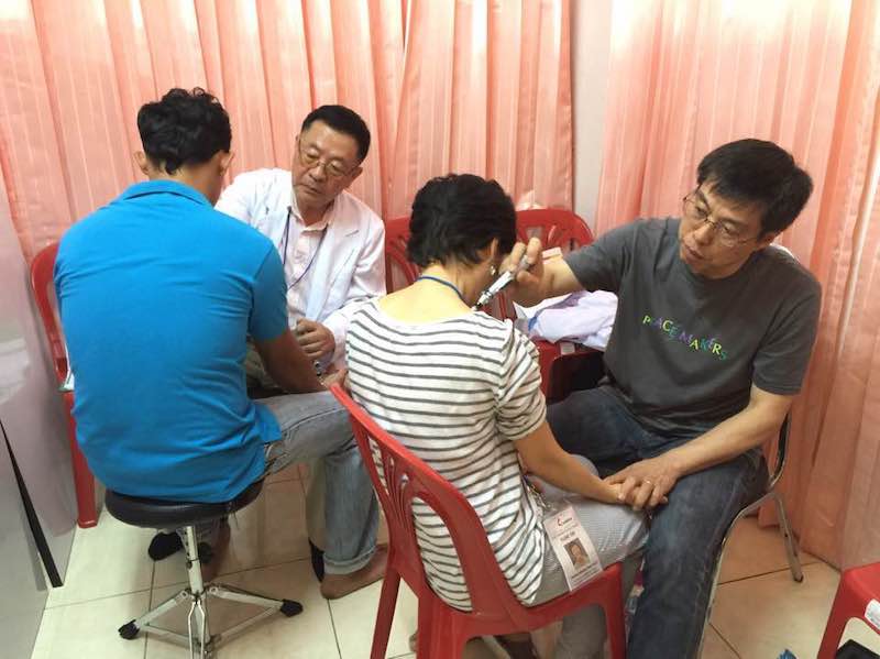 너무 날씨에 모두들 옷을 벗고 일을 하는 때에도 김영옥 권사님과 조병철 권사님 두분께서는 이름이 새겨진 의사가운을 벗지 않은채, 예수님처럼 의사가 되어 열심히 치료사역을 하였습니다. 예수님의 사랑을 가지고 침사역을 하며 이곳 사람들에게 치유의 손길을 내밀고 있습니다. 모든 팀원들이 열정적으로 사역을 펼쳐가고 있습니다.