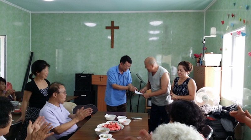 한시간의 새벽 예배를 드린 후 다시 센터로 돌아와 선교 사역 물품들을 정리하여 알마티 산동네를 방문했습니다. 그곳에서 우리 산타클라라연합감리교회의 선교의 열매를 눈으로 확인하는 순간들이 계속 펼쳐졌습니다. 산동네 사람들을 위해 가파른 산길에 만들어진 일명 천국계단을 딛고 올라가며 저들이 힘들게 생활했을 지난 과거를 생각해봤으며 그들을 긍휼히 여겨 이 천국 계단을 위해 기도하며 준비했던 여러 손길들을 생각하며 참 기쁜 감사의 기도를 주님께 올려드렸습니다. 가쁜 숨을 몰아쉬며 도착한 그곳엔 열악한 환경속에서 교회 재승인을 받지 못한채로 사역을 감당하고 계시는 알렉 목사님과 사모님 그리고 몇분의 성도님들이 정성껏 조반을 준비해놓고 우리 선교팀을 반겨맞아 주셨습니다. 순수하신 그 모습들속에서 작은 예수님의 모습을 뵐 수 있었습니다. 그곳에서 안경, 사진, 전자침, 한방침 사역을 정오까지 하고 그 교회 목사님께 선교헌금을 전해드린 후 아쉬워하는 성도님들과 이별하고 8/27의 오전 사역을 끝내고 앞으로의 사역지인 우수토베를 향해 출발했습니다.