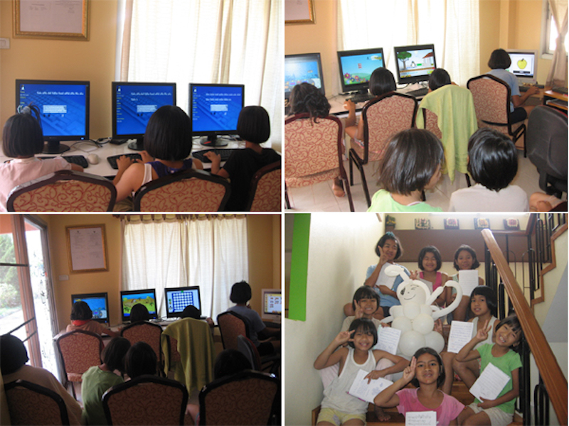 Greetings from Chiang Mai, Thailand. We, at the children center, wanted to send you greeting and update on our computer usage. We are so thankful to God and to your church for setting up our computer system for us. The children enjoy using the computer on a daily basis. They are learning to type, learn math and letters and play games. We are getting use to the system and learning new games every day. We welcome your comments and suggestions to use the system better. In the future, we have to look toward getting head phone sets for the girls as some of the learning systems require hearing letters or sounds. In the attachment, you will see some pictures of the girls. Thank you again for all that you have done for us. May God bless you richly! Wilai |