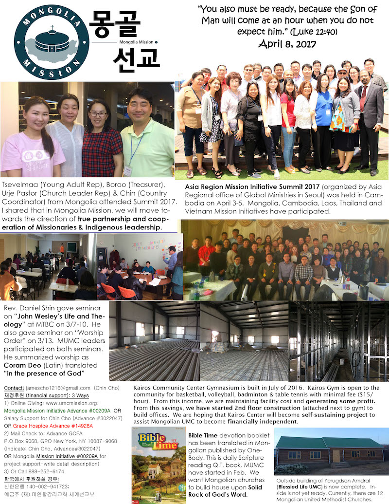 국외선교부 선교소식: 몽골 선교 Publish on April 08,2017 | 선교위원회 페이지 정보 작성자 선교위원회 댓글 0건 조회 7,427회 작성일 17-04-08 13:10 목록 본문 이전글몽골 선교답사 소식 17.05.30 다음글UMCOR Health Kit 만들기 17.03.27 댓글 0 댓글목록 등록된 댓글이 없습니다. 목록
