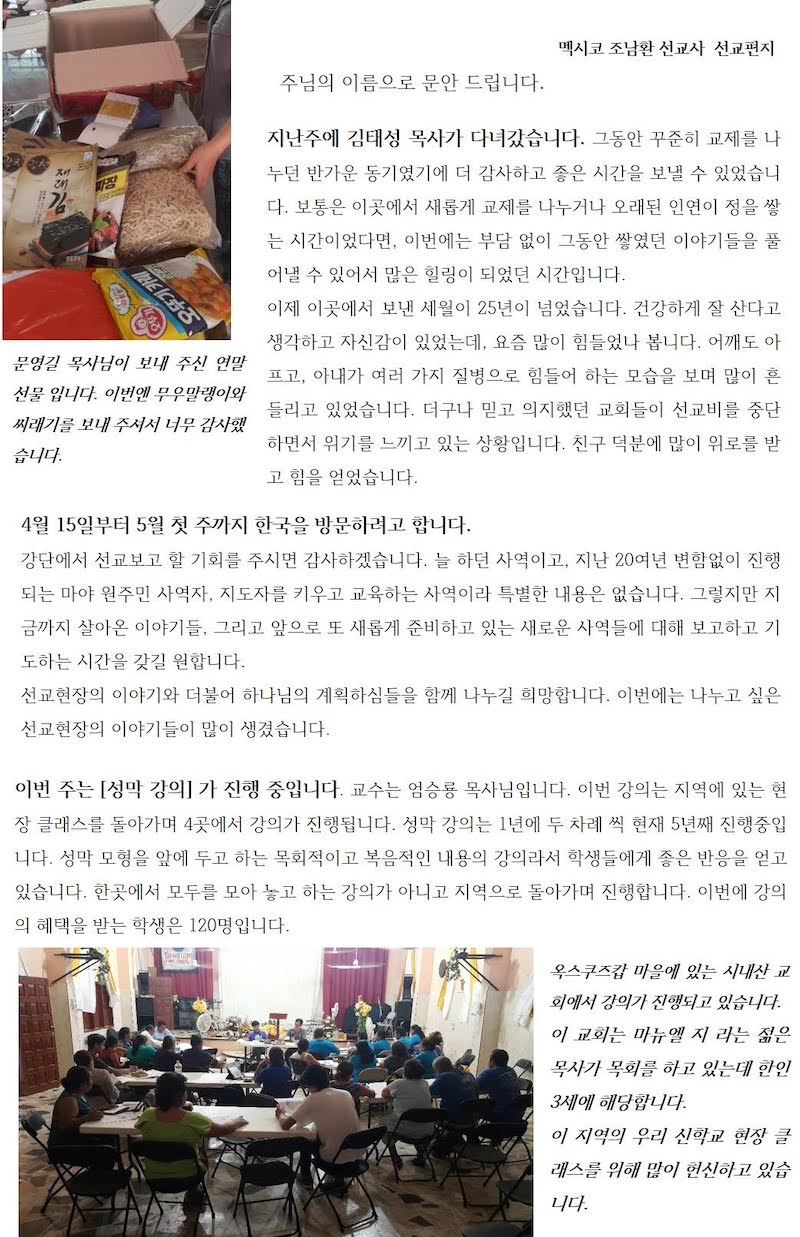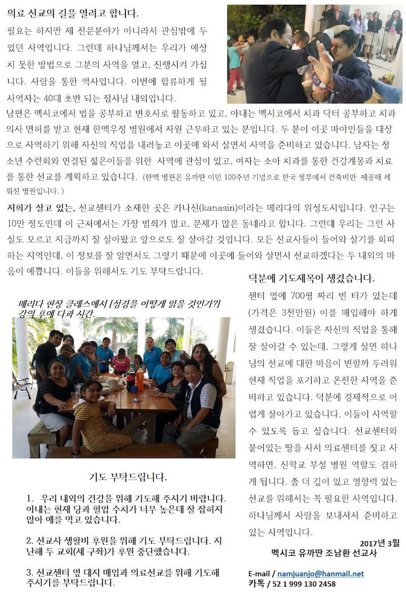 국외선교부 선교소식: 멕시코 유카탄 - 조남환 선교사 Publish on March 20,2017 | 선교위원회