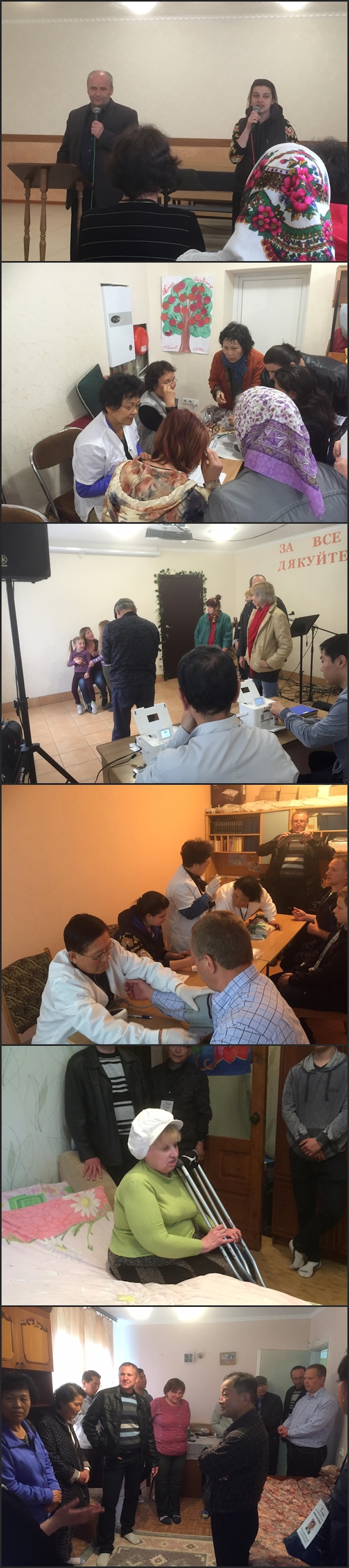 첫번째 사진은 휴모데 교회 세르게이 목사님과 통역하는 발렌티나 입니다. 두번째는 안경사역, 세번째는 사진사역,