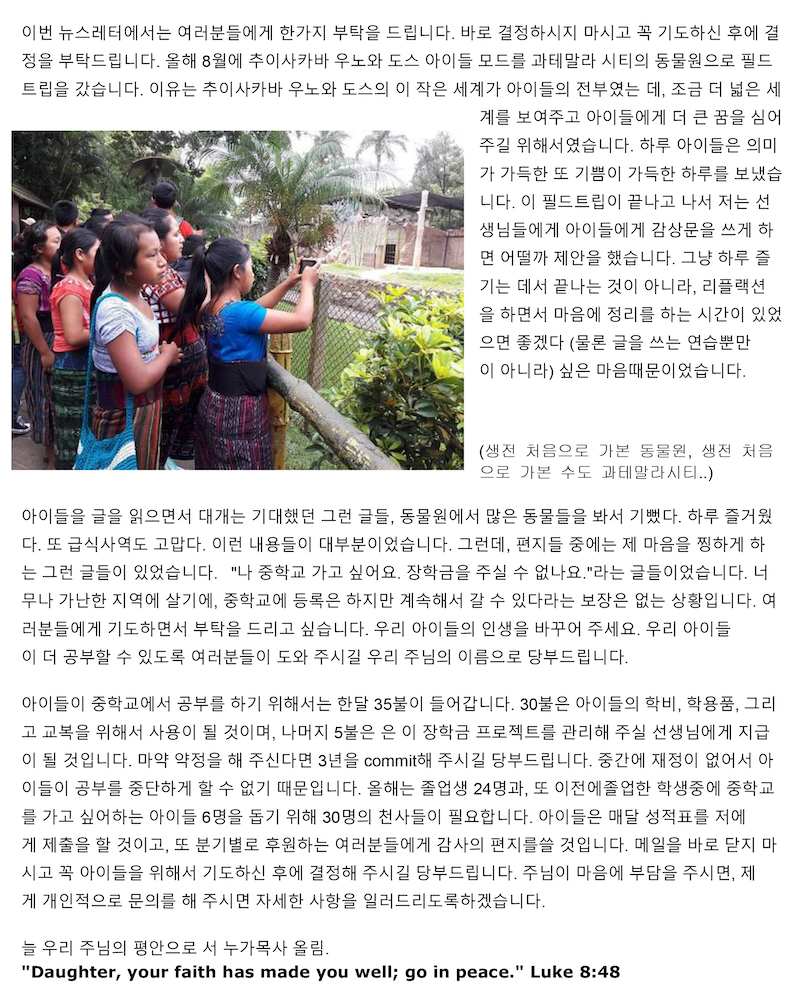 과테말라에서 온 선교소식 - 이누가선교사 > 선교사역