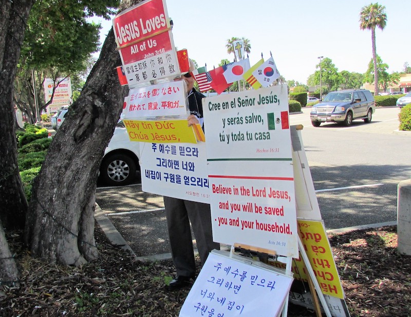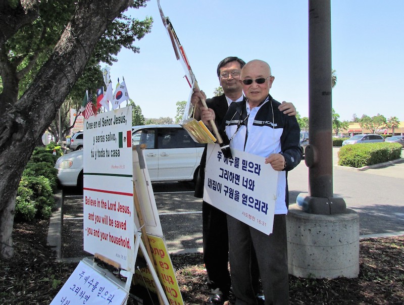 이런 노방 전도 하신 분은, 38 년 전에 미국 이민 오시자마자 산호세 flea market 에서 시작하여 지금까지 갤러리아 마켓 앞에서 전도하신 김진성 장로님이십니다. 갤러리아 마켓 앞 엘 카미노 리얼 에서 하신 것은 15 년 되셨습니다. 일주일에 두 번 나가 하셨는데, 최근에는 힘이 들어 하루에 30 분 정도만 하셨답니다. 우리 교회에서 장로 취임을 1992 년에 하셨는데, 당시 김고광 목사님께서, " 장로님의 노방전도로 우리교회가 부흥하며 커 갑니다." 하신 격려의 말씀이 큰 힘이 되셨다고 추억하십니다.
