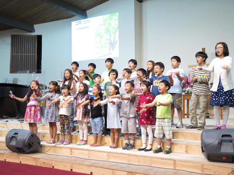 지난 5월 10일 어버이주일에 2부와 3부예배에서 특송과 율동을 하는 유초등부 아이들의 모습입니다.