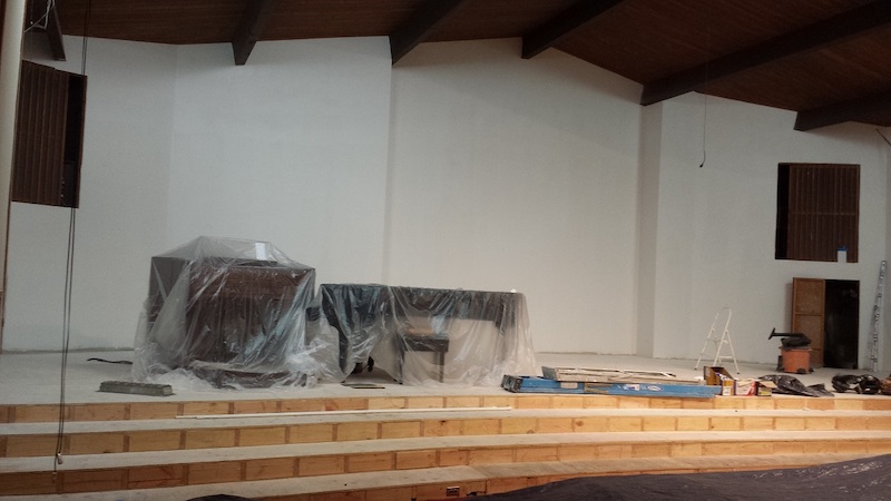 강단의 마무리 작업이 한창 진행중입니다. (첫번째 사진)