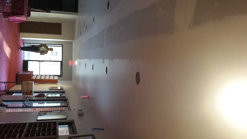 회중석 벽면의 타일 작업도 순조롭게 진행되고 있습니다. (두번째 사진)