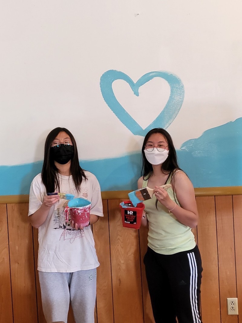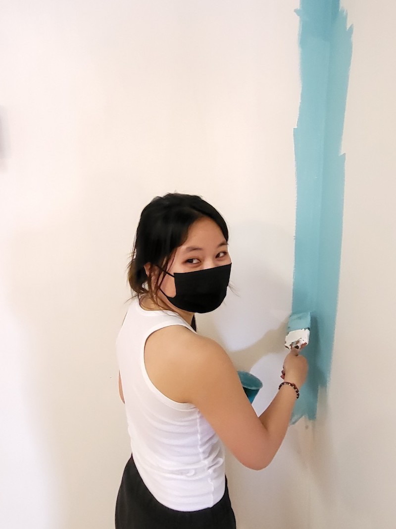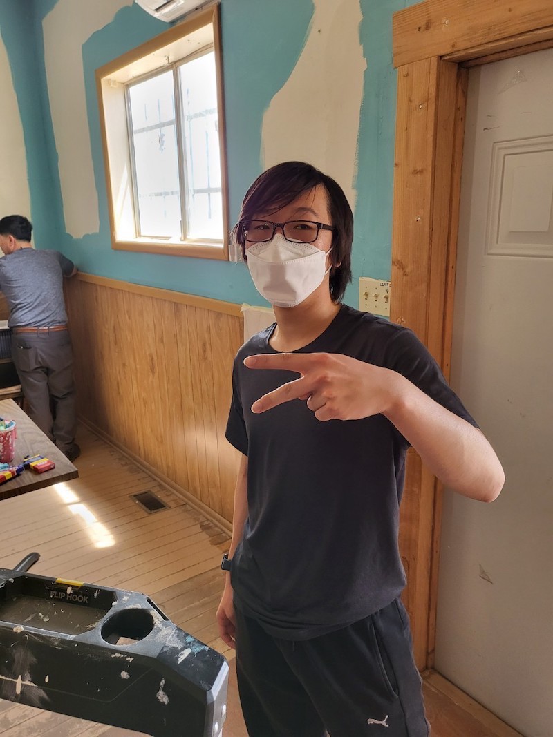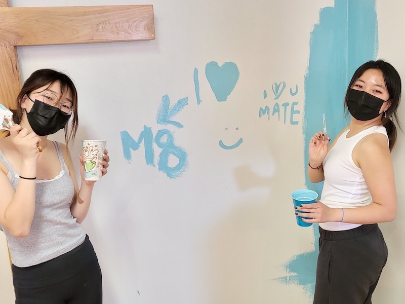 선교사님께서 미리 준비해주신 페인트 도구를 가지고 예배 당 안을 아름답게 꾸몄습니다.