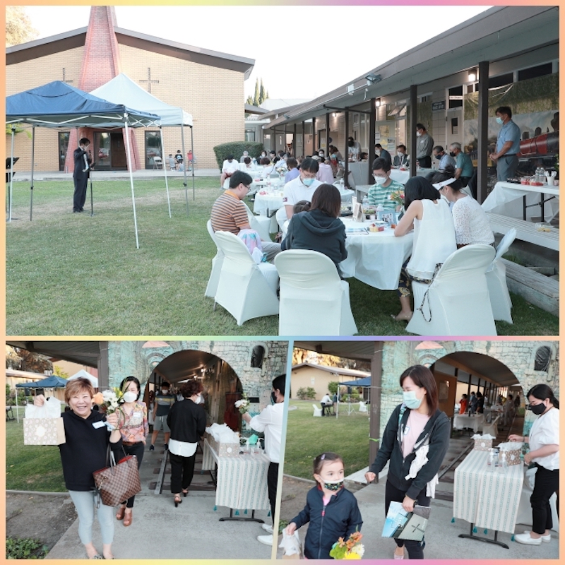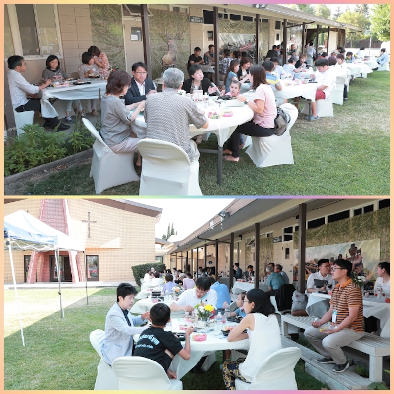 테이블 세팅을 본당앞 잔디밭에 하여 최대한 안전하게 진행되었습니다.