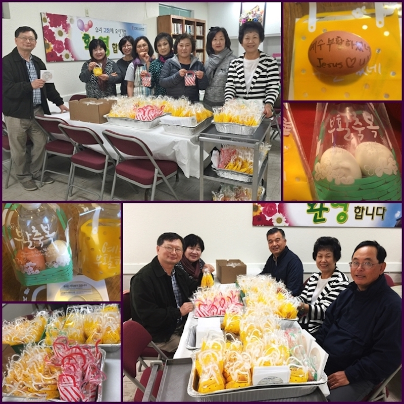 부활절을 맞아 전도위원회에서는 토요일 새벽기도후 삶은계란에 정성으로 성경귀절 쓴것과
