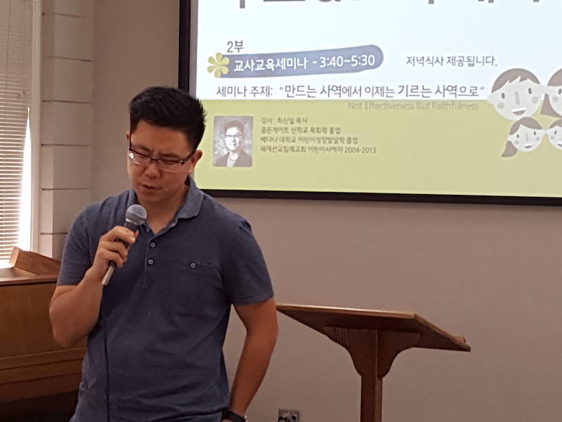 1부로 김명자 사모님께서 학부모들을 위한 세미나와 이어서 2부로 최신일 목사님께서 교사들을 위한 귀한 말씀을 전해주셨습니다.
