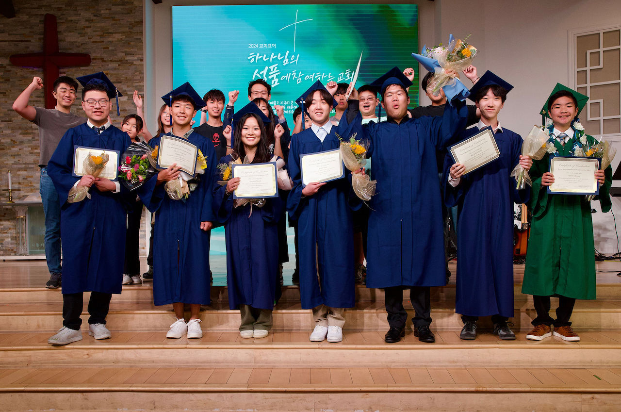 We held our graduation ceremony last Sunday with the blessings and prayers from our congregation. We are grateful for God's grace that has been with us all this time. We also express our deepest gratitude to our parents' generation, who have been the foundation for the next generation to stand firmly on the rock of faith. We will live as light and salt in the world while remembering the dedication and love of our parents. Thank you!