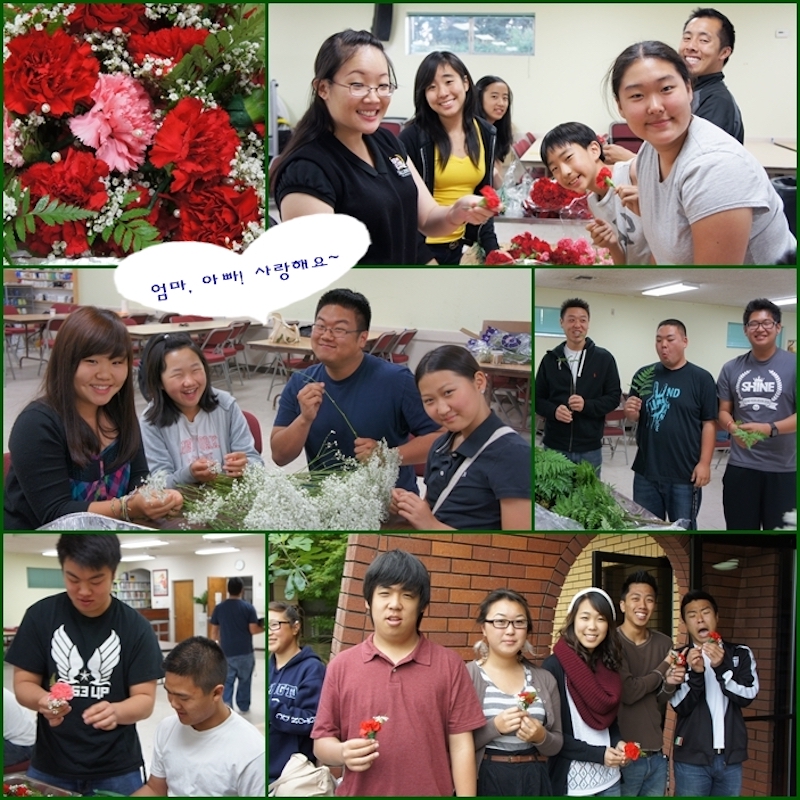 어버이 주일을 맞이하여 중고등부 학생들이 직접 카네이션을 만들어