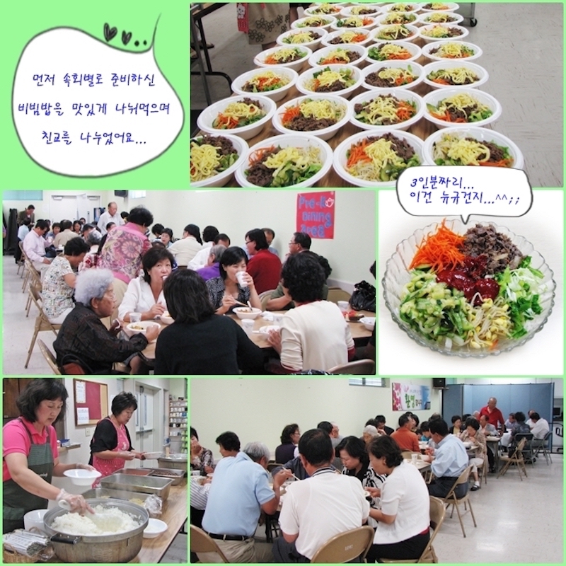 여선교회와 속별로 준비한 비빕밥을 먹으며 친교를 나누고