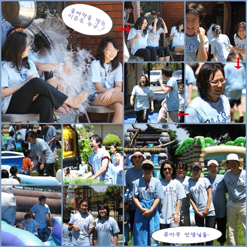 개구쟁이(^^) 초등부 이우민 전도사님께서 Youth 담당 조선애 목사님께 수고하셨다며 물 세례를 듬뿍주시며
