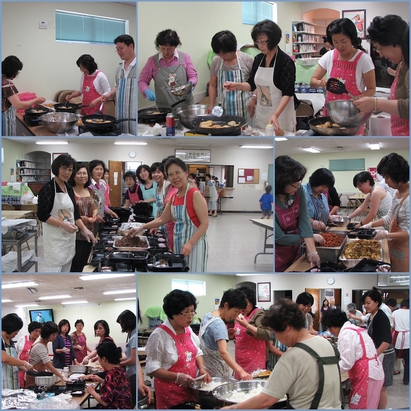 주일 예배후 엄청 더운 날씨임에도 정성을 다해 음식만들기에 바쁜 손길들~