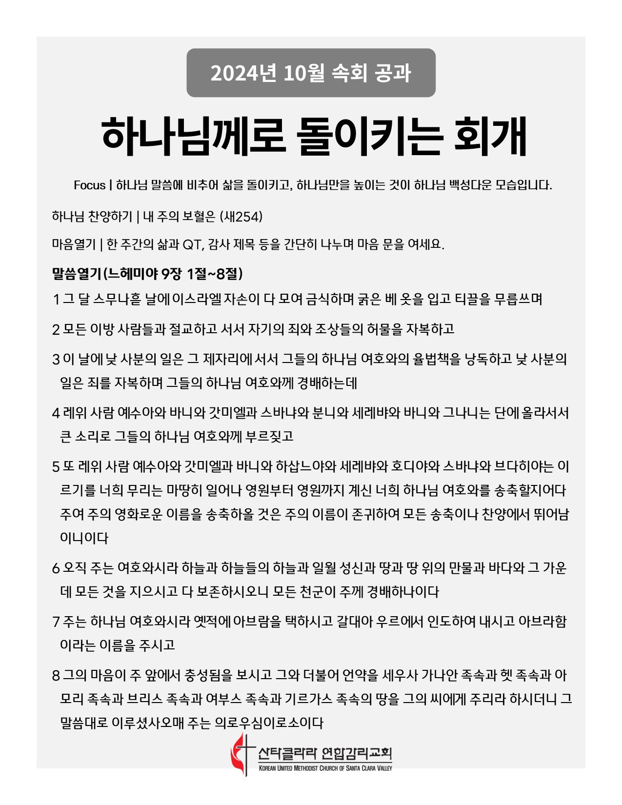 [속회공과] 2024년 10월 Publish on September 25,2024 | 박진성전도사