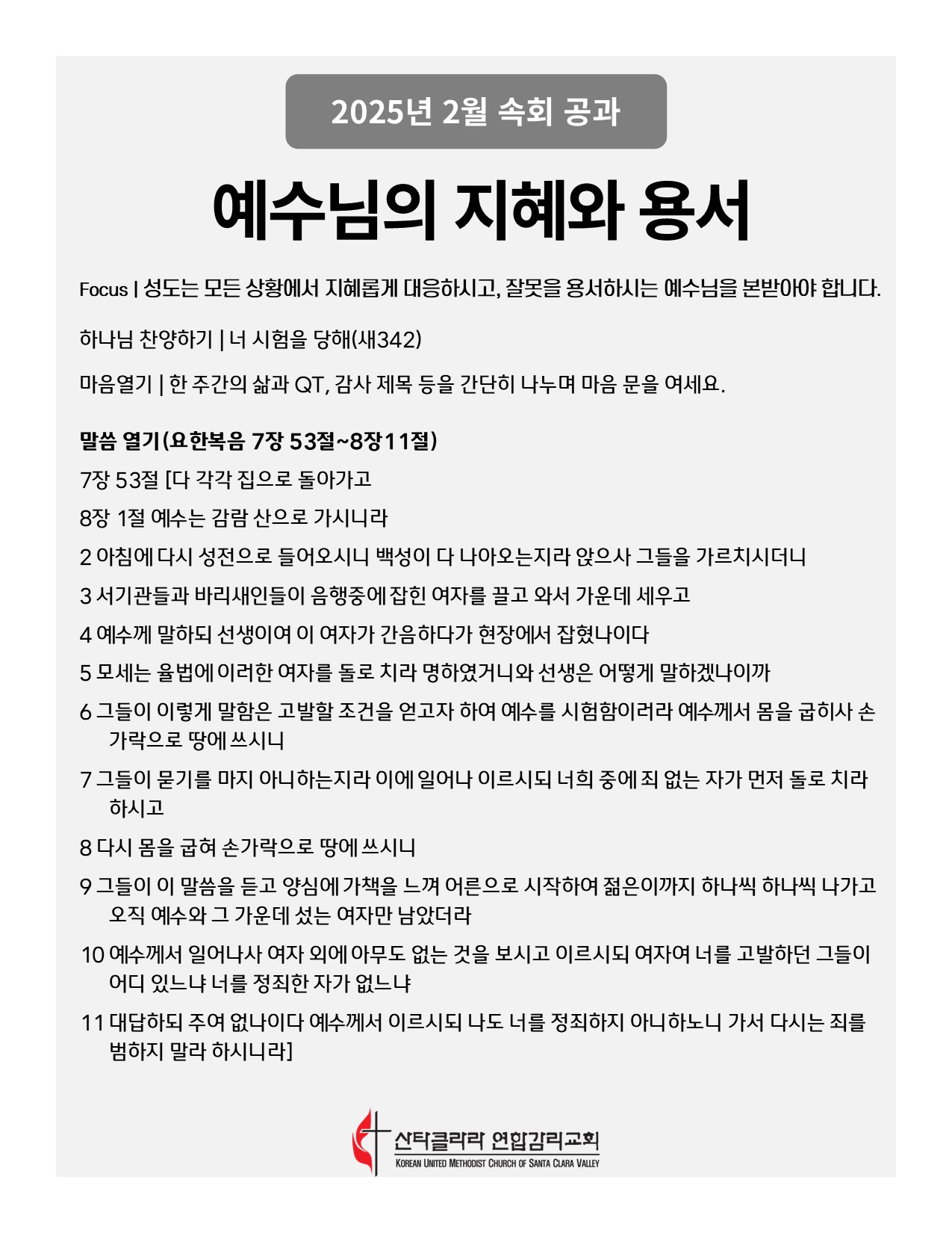 [속회공과] 2025년 2월 Publish on January 24,2025 | 박진성전도사