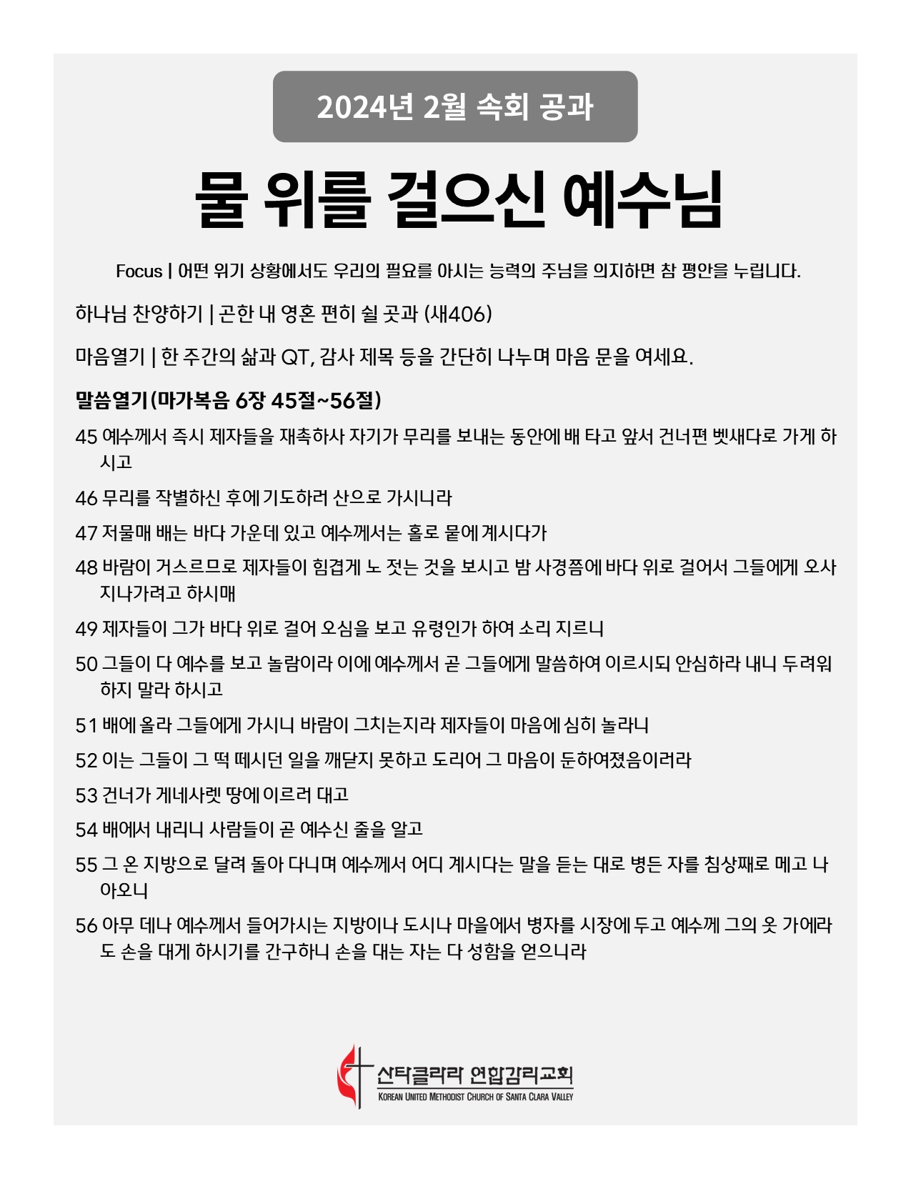 [속회공과] 2024년 2월 Publish on January 24,2024 | 박진성전도사