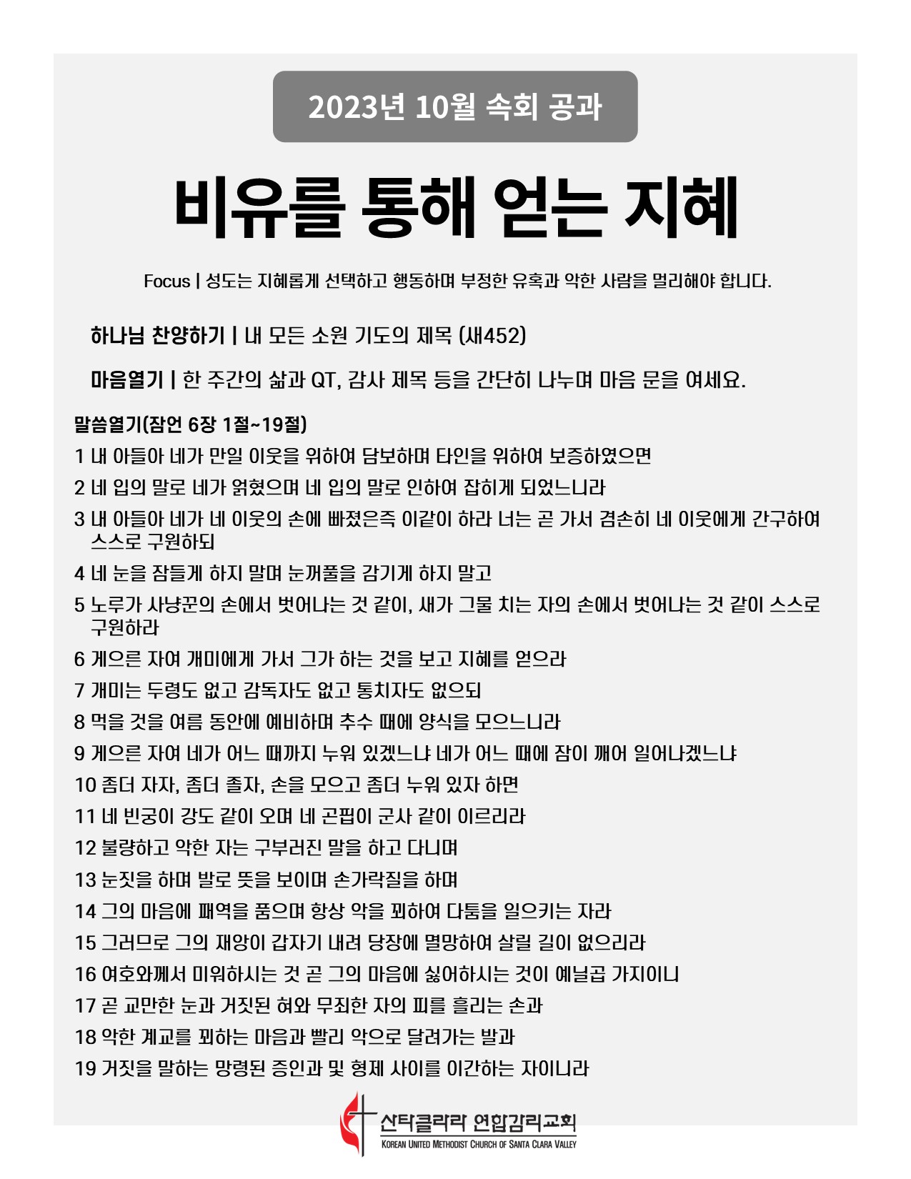 [속회공과] 2023년 10월 Publish on October 01,2023 | 박진성전도사