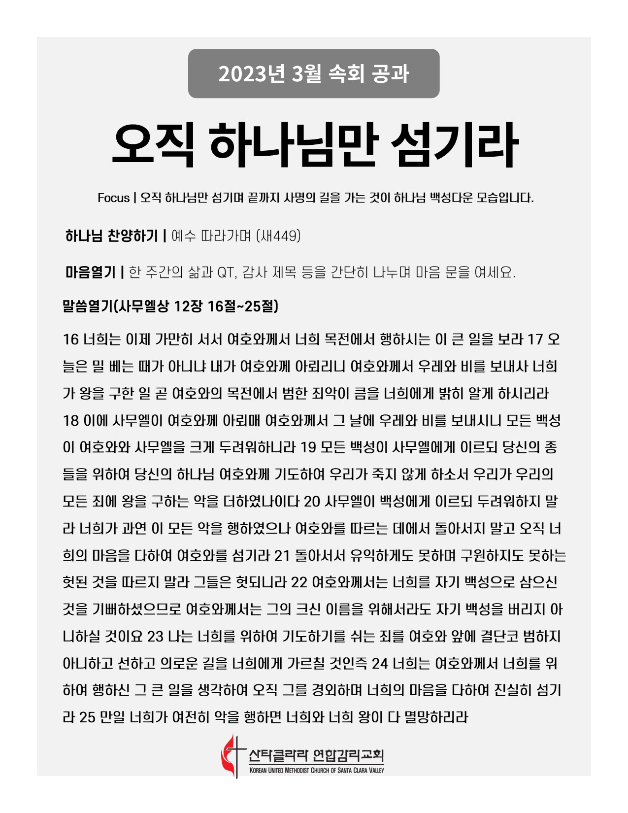 [속회공과] 2023년 3월 Publish on February 26,2023 | 박진성전도사