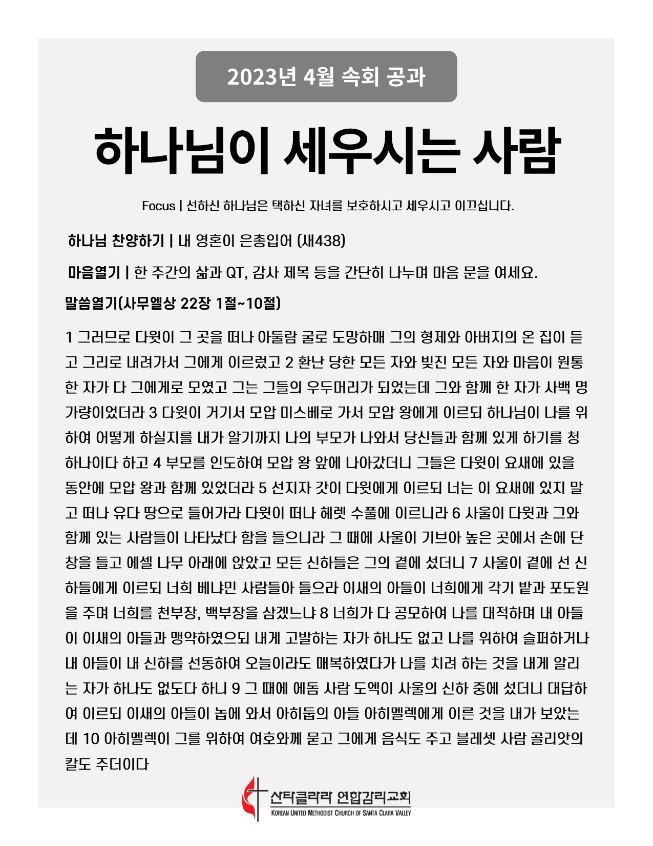 [속회공과] 2023년 4월 Publish on March 28,2023 | 박진성전도사