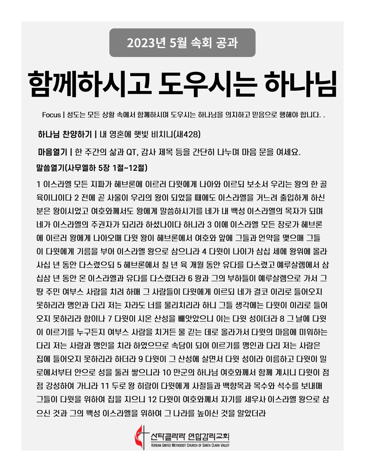 [속회공과] 2023년 5월 Publish on April 26,2023 | 박진성전도사