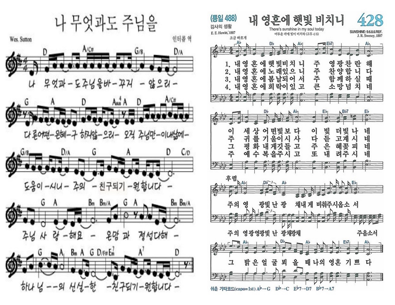 내 영혼에 햇빛 비치니(새428): https://youtu.be/mM_6zgXeqjo